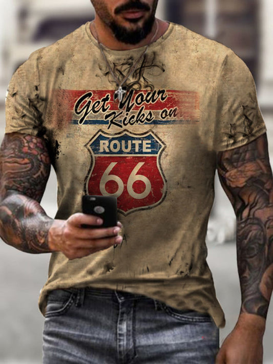 Round Neck Digital Print Slim Pullover Men's T-shirt