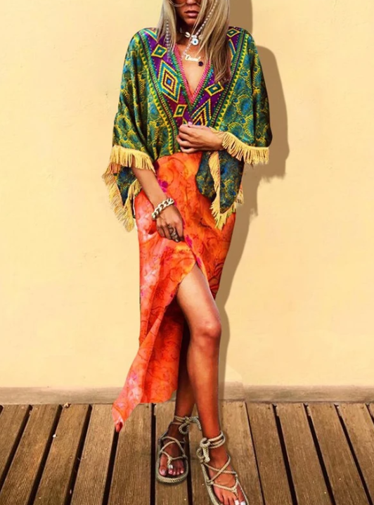 Summer Ladies Ruffle Dress Bohemian Ethnic Dress